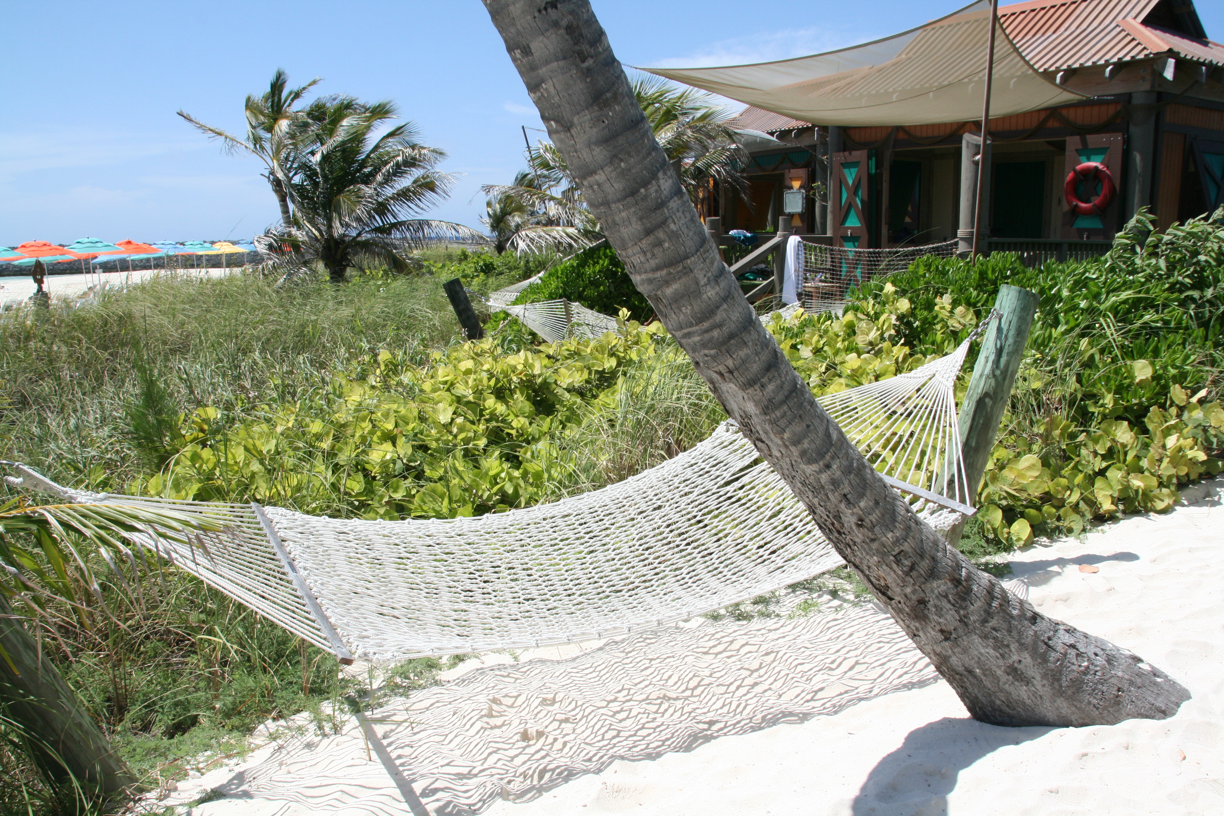 If you are on a cruise that stops at Disney’s Private Island Paradise, Castaway Cay, you may want to consider renting a private cabana for your time there.  On Castaway Cay there are 20 private cabanas divided between the family and adult-only beaches.  Each cabana is 325-square feet and includes a private deck, hammock, shower, refrigerator, locker, non-alcoholic beverages, suntan lotions and towels.  The cost is $499/day and can accommodate up to 6.