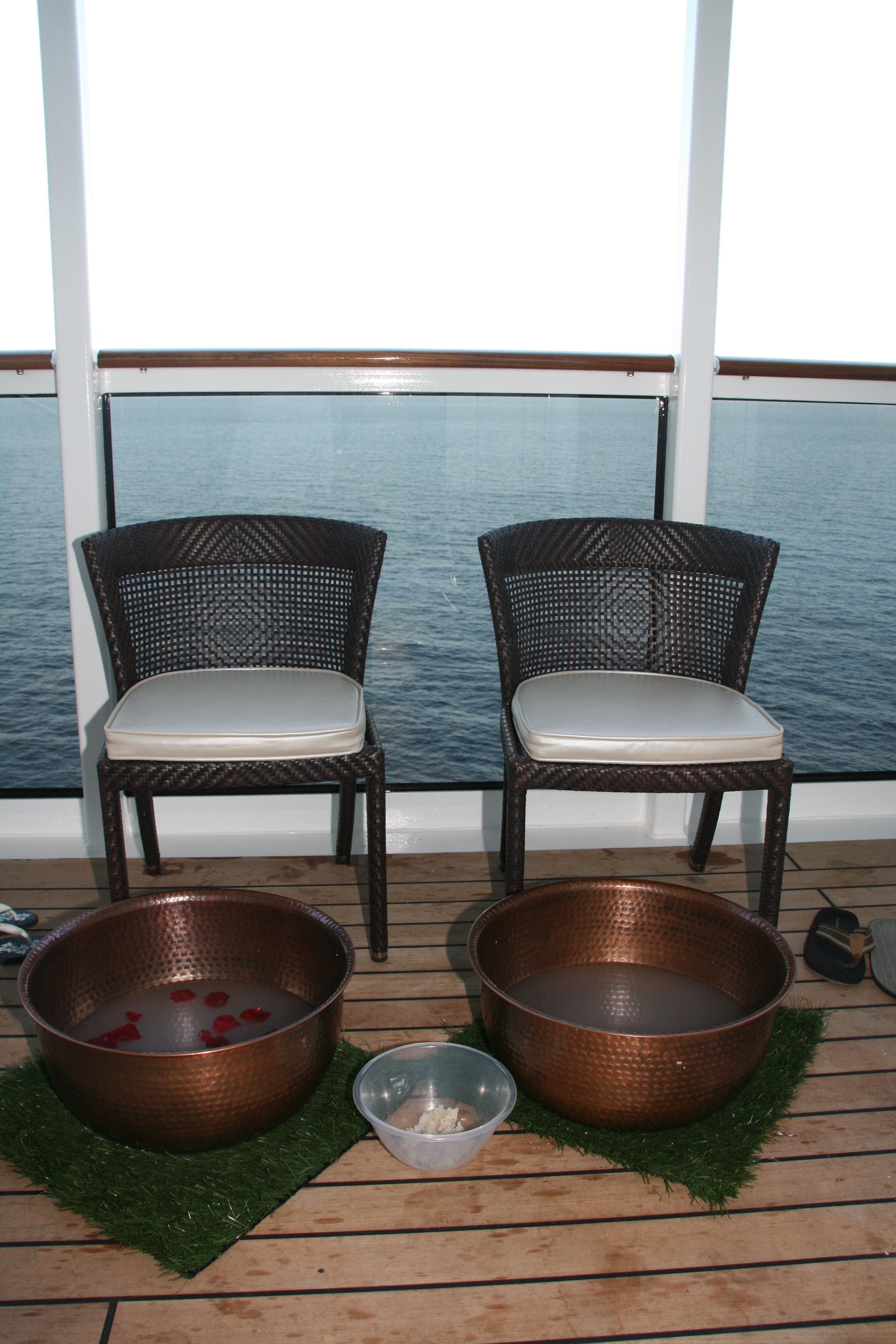 Each of the couple’s spa villas has 2 beds, a rain shower and a balcony with 2 chairs, a small table, 2 padded chaise lounge chairs and a Jacuzzi. The massage experience started with a rose petal foot bath on the verandah.