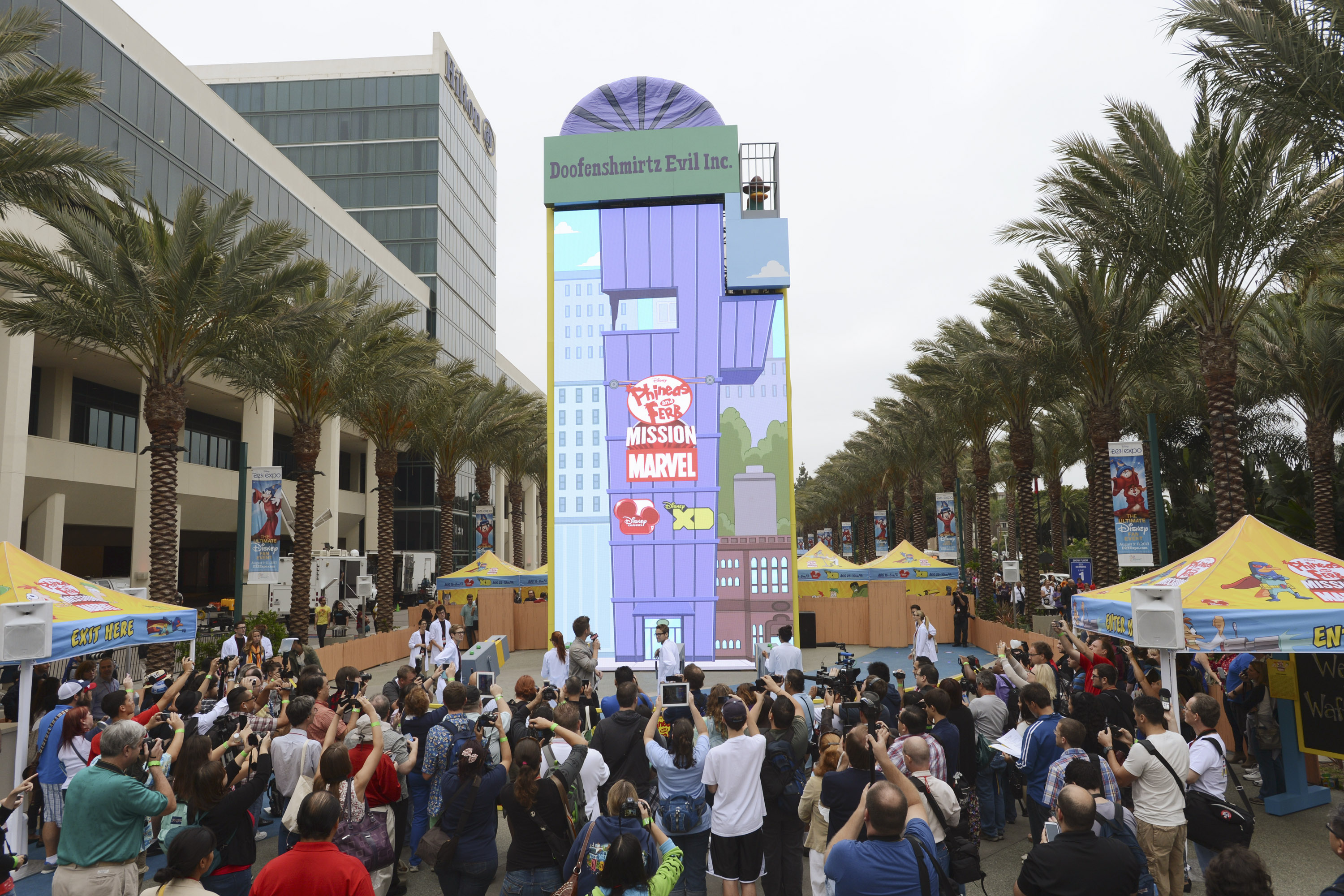 My Expo experience began with a press breakfast Friday morning complete with a 40’ tall Waffle-inator, & featuring stars of Disney Channel’s hit animated series, Phineas and Ferb, as well as characters from the Marvel Universe.