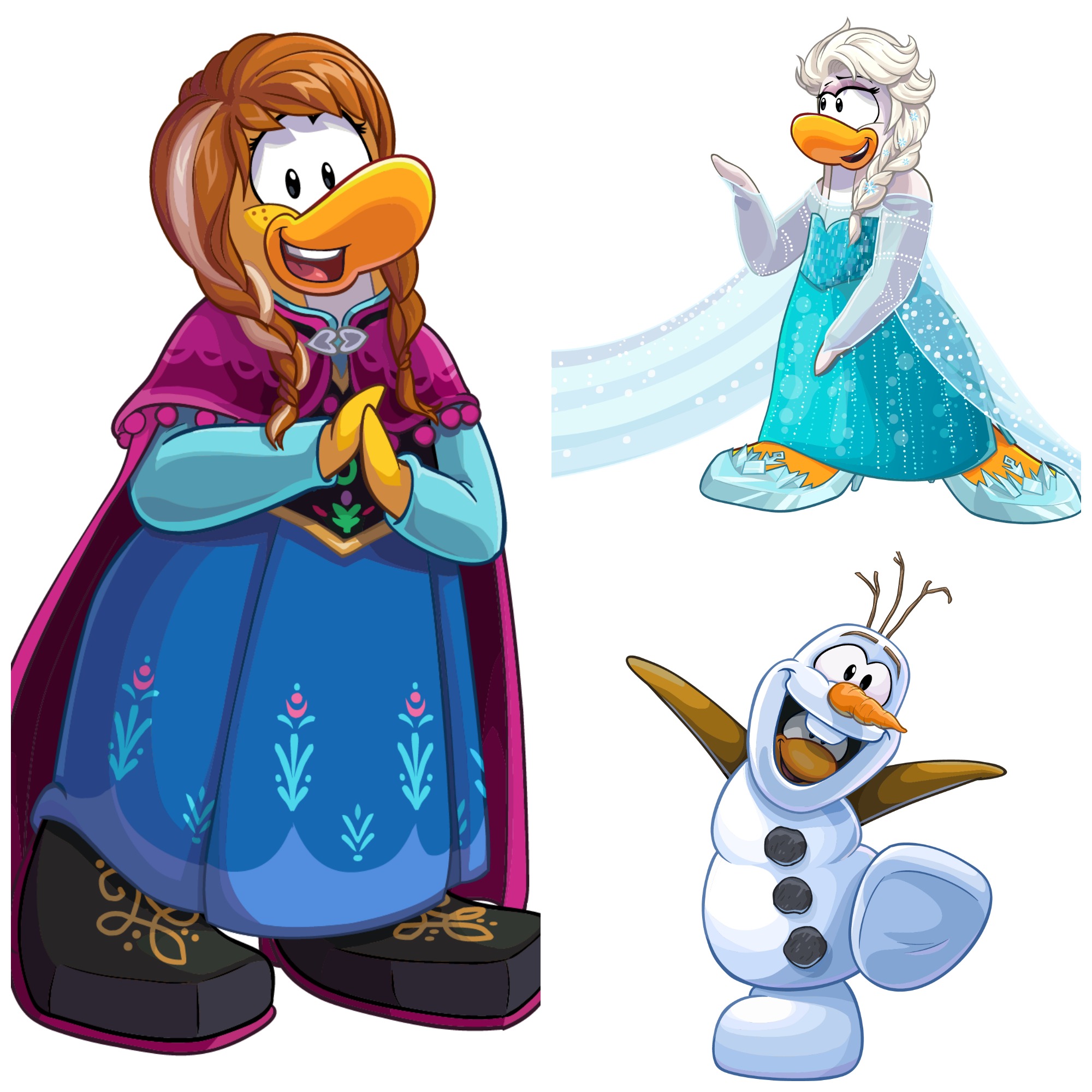 - Choose from a number of member-only costumes to dress their penguin characters in, including Olaf, Sven, Anna, Elsa and Kristoff themed outfits